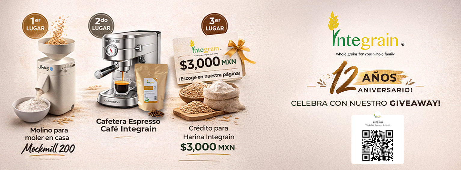 En Integrain le brindamos la experiencia de comida auténticamente integral. Harina recién molida de una variedad de granos nutritivos que le permiten hornear pan más saludable y sabroso.