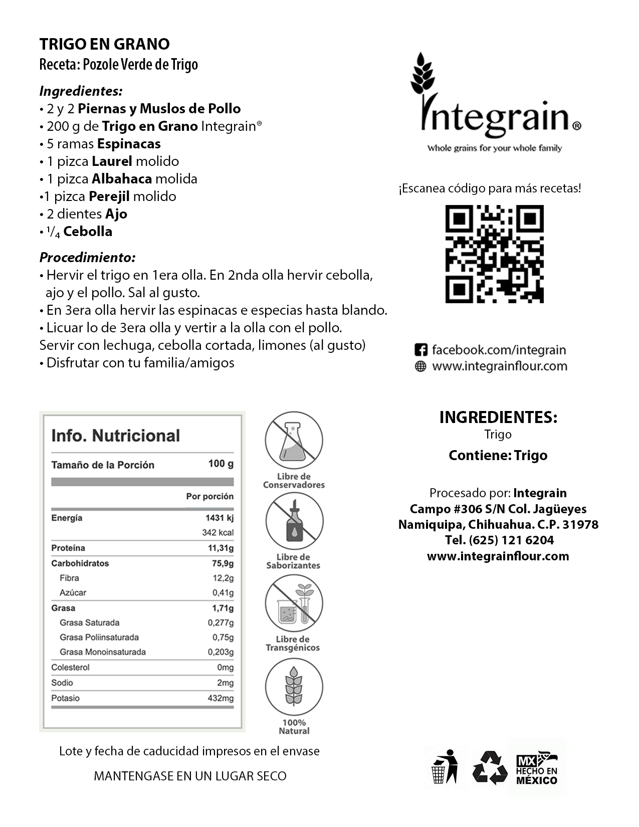 Todos nuestros productos son completamente integrales, libres de organismos modificados genéticamente (GMO), conservantes y cualquier tipo de tratamiento. Son productos completamente naturales.